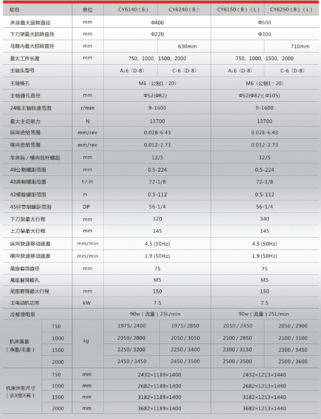 型號:CY6140(B)、CY6240(B)、CY6150(B)(L)、CY6250(B)(L)